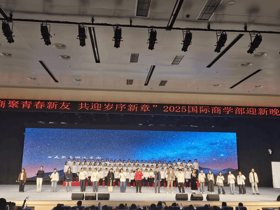 本次迎新晚会充分展现了国际商学部学子兼容并蓄、创新求索的蓬勃朝气。展望未来,国际商学部将继续秉持国际化、复合型人才的培养理念,以“五育并举”为纲领,依托丰富的第二课堂与实践平台,打造一系列兼具全球视野与商科特色的校园文化活动。我们致力于营造开放、互动、创新的成长环境,助力学子们拓宽国际视野,锤炼商业智慧,涵养人文精神。愿全体2025级新生以此为新起点,在国际商学部的广阔舞台上,博观约取,知行合一,成长为面向未来的卓越人才,为新时代发展贡献青春力量。