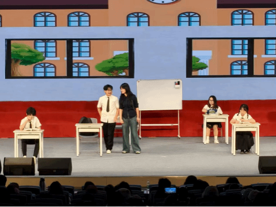 晚会的终章“启航·筑梦向未来”洋溢着对未来的憧憬与力量。歌舞表演《奔跑的青春》活力迸发,以激昂的节奏展现了学子们无畏前行、追逐梦想的坚定决心。原创话剧《上学那些事》则从日常学习生活中汲取灵感,在温馨而幽默的叙事中,浓缩了校园生活的点滴成长。最终,晚会在温情涌动的师生合唱《最美的太阳》中圆满落幕,师长与学子同台献唱,歌声中寄托着对未来的美好祝愿,寓意着在师生的携手同行下,每一位学子都将迎来自我人生中最美的曙光。整场晚会在温暖而充满希望的氛围中完美谢幕。